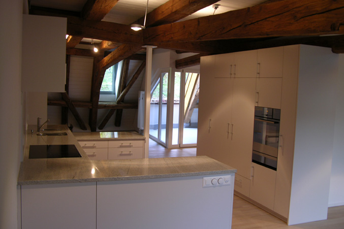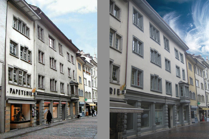 Die Liegenschaft an der Unterstadt 6 bestand ursprünglich aus zwei, vielleicht aus drei verschiedenen Gebäuden aus dem 13./14. Jahrhundert, die im Laufe der Zeit 'zusammengewachsen' sind. Die so entstandene Struktur hat grossen Einfluss auf das Projekt und den Umbau. Das Haus weist einen aussergewöhnlich wertvollen historischen Ausbau auf und steht unter Denkmalschutz. Im Erdgeschoss sind neu zwei Verkaufslokale situiert, darüber, im 1. Obergeschoss, liegen Nebenräume und zwei Kleinwohnungen. Der neuangelegte Hauseingang führt zentral ins Gebäude und erschliesst die Verkaufslokale sowie die Wohnungen. Ein Lift steigert den Komfort erheblich. Im 2. und 3. Obergeschoss sowie in den Dachgeschossen werden verschiedene Wohnungstypen mit hohem Ausbaustandard angeboten.